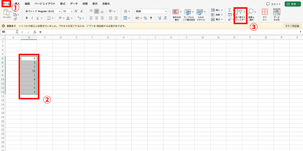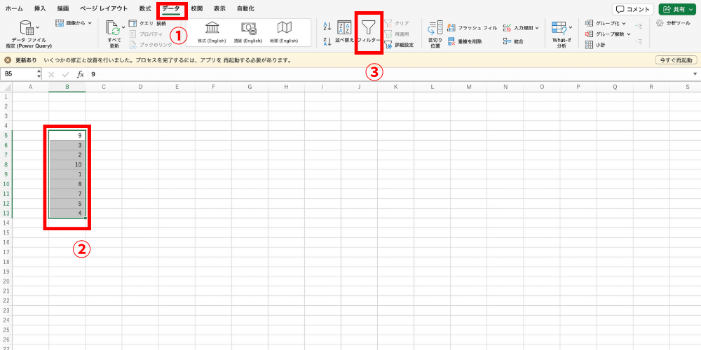 ただし、セルを選択する際に、列や行の数字が含まれる列も選択しないと表示されないので注意してください。