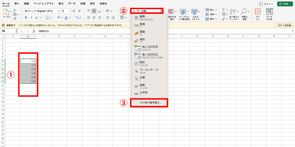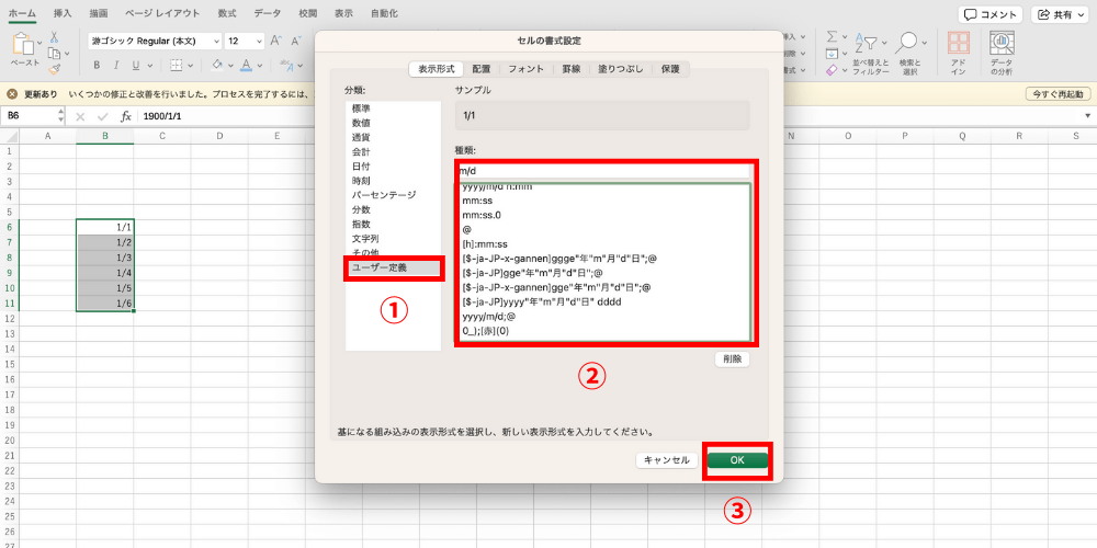 このように表記方法を変更するには、表記を変更したいセルを選択し、(Macの場合は)右クリックをすることで表示される「セルの書式設定」をクリックし、自身で表記方法を変更できます。
