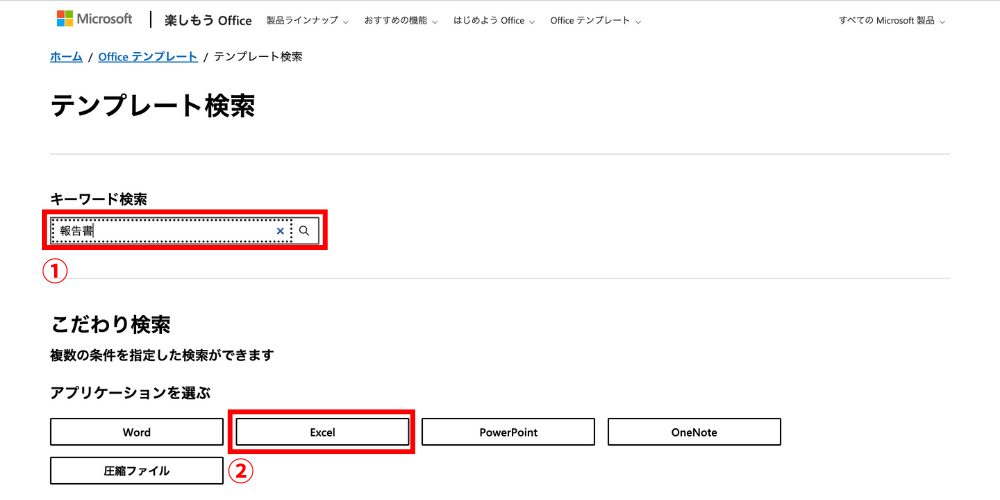 Microsoft(マイクロソフト)の公式サイトからもテンプレートをダウンロードできます。