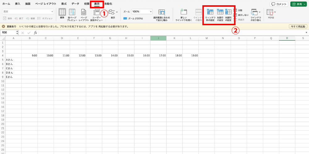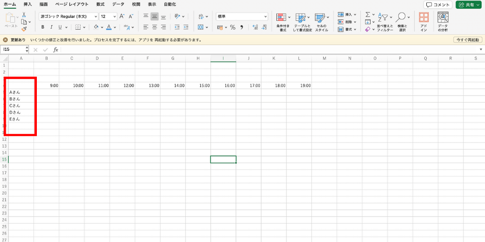 まずは複数人用のスケジュール管理表の作り方を確認しましょう。
