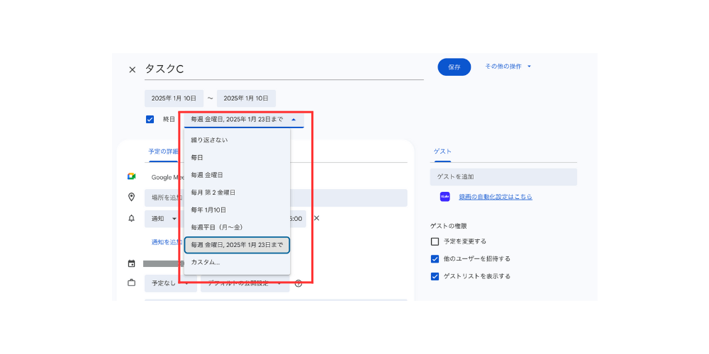 Googleカレンダーの繰り返し予定では、通常のイベントと同様に主催者変更が可能です。ただし、全回に反映するか一部のみ変更するかを確認する必要があります。