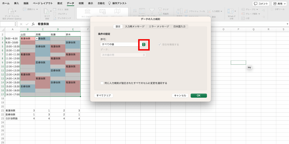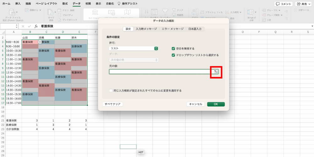 スケジュールのみであれば簡単に作成することができますが、エクセルには関数を利用した付加機能を作ることも可能です。1日の訪問件数の把握や手入力を省くためにプルダウンを作ることも可能です。