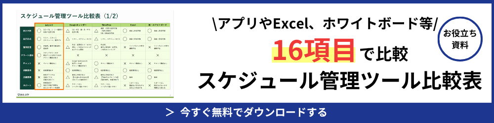 弊社では、GoogleカレンダーやTimeTreeなどの、スケジュール管理ツールを徹底比較する資料をご用意しております。