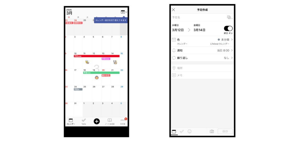 といった機能があると、「この時間は予定が被っているから遊べない」といった判断を一瞬で行えます。