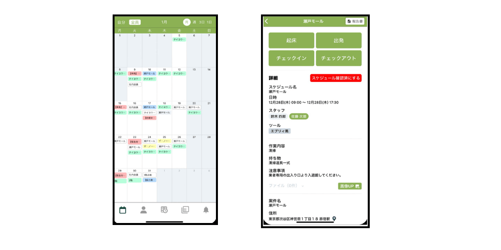 弊社で開発中のスケジュール管理サービス 「サポスケ」 は、現場で必要な情報をまとめて確認できる設計を重視しています。
