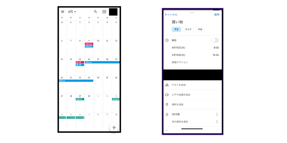 Googleカレンダーで仕事の予定を管理し、シフトや共有予定はTimeTreeなど別のカレンダーで管理するなど、用途ごとにカレンダーを分けるのも有効な方法です。