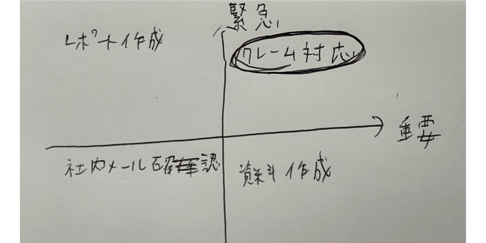 - 左下(緊急だが重要ではない): 誰かに任せる、または手早く片付ける雑務