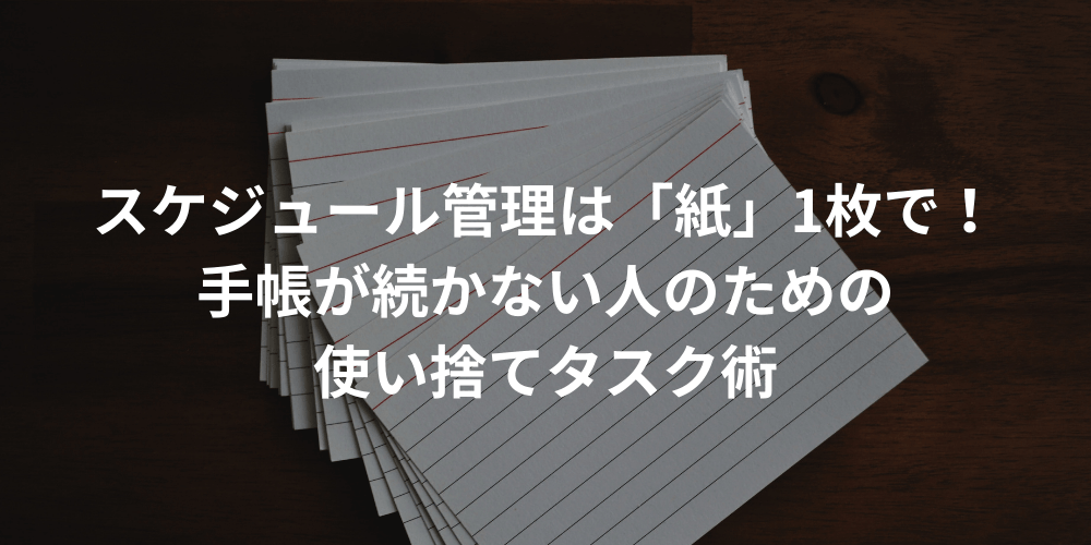 しかし、あえて「綴じられていないペラ紙」を使うことで、日々のタスク管理は驚くほど身軽になります。 綺麗に書く必要はありません。デスクにあるコピー用紙の裏紙とペンさえあれば、今すぐ始められます。手帳が続かなかった人こそ実感できる、1枚の紙に特化した超シンプルなスケジュール&タスク管理術をご紹介します。