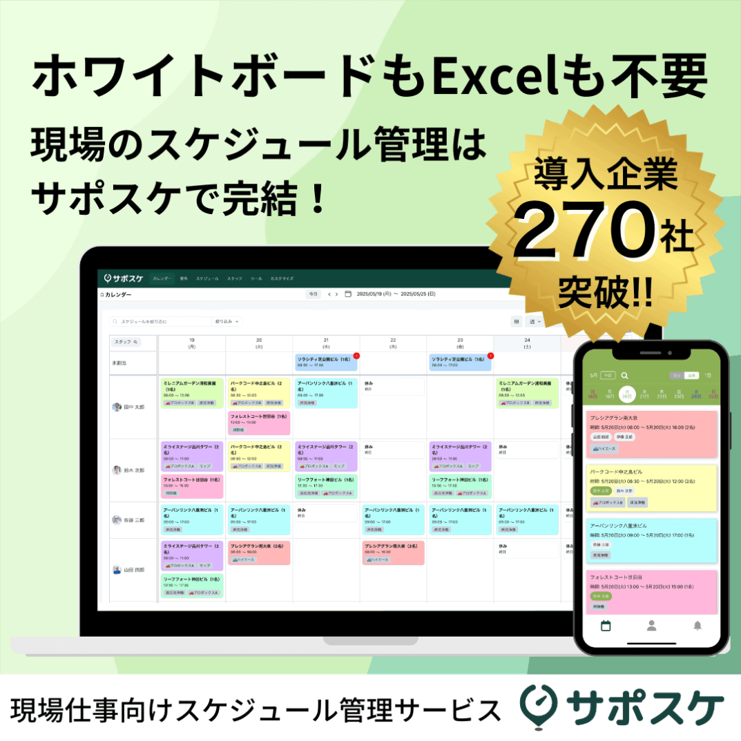 現場仕事のスケジュール管理と共有は「サポスケ」