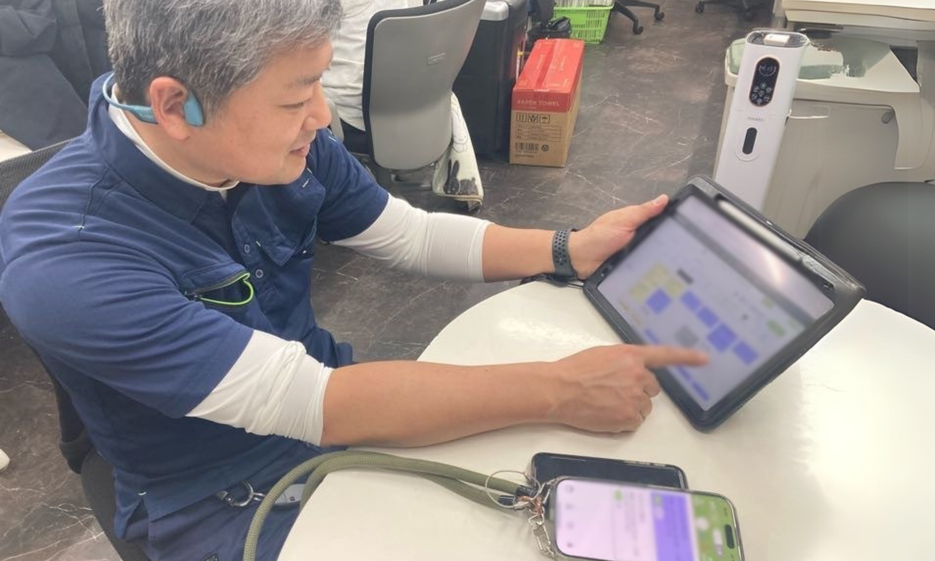 最初は苦労しました。社内には「書いた方が早い」という考えの人が多く、私自身もそう思っていました。手書きのメモは自分にとっては分かりやすいのですが、共有が難しく、「言った・言わない」のトラブルが頻発していました。そこで、「自分も慣れるから、みんなも一緒に慣れてほしい」という姿勢で、全員で使いこなせるように取り組みました。特に若いスタッフから操作方法や定型文の登録などを学びつつ、少しずつ浸透させていきました。