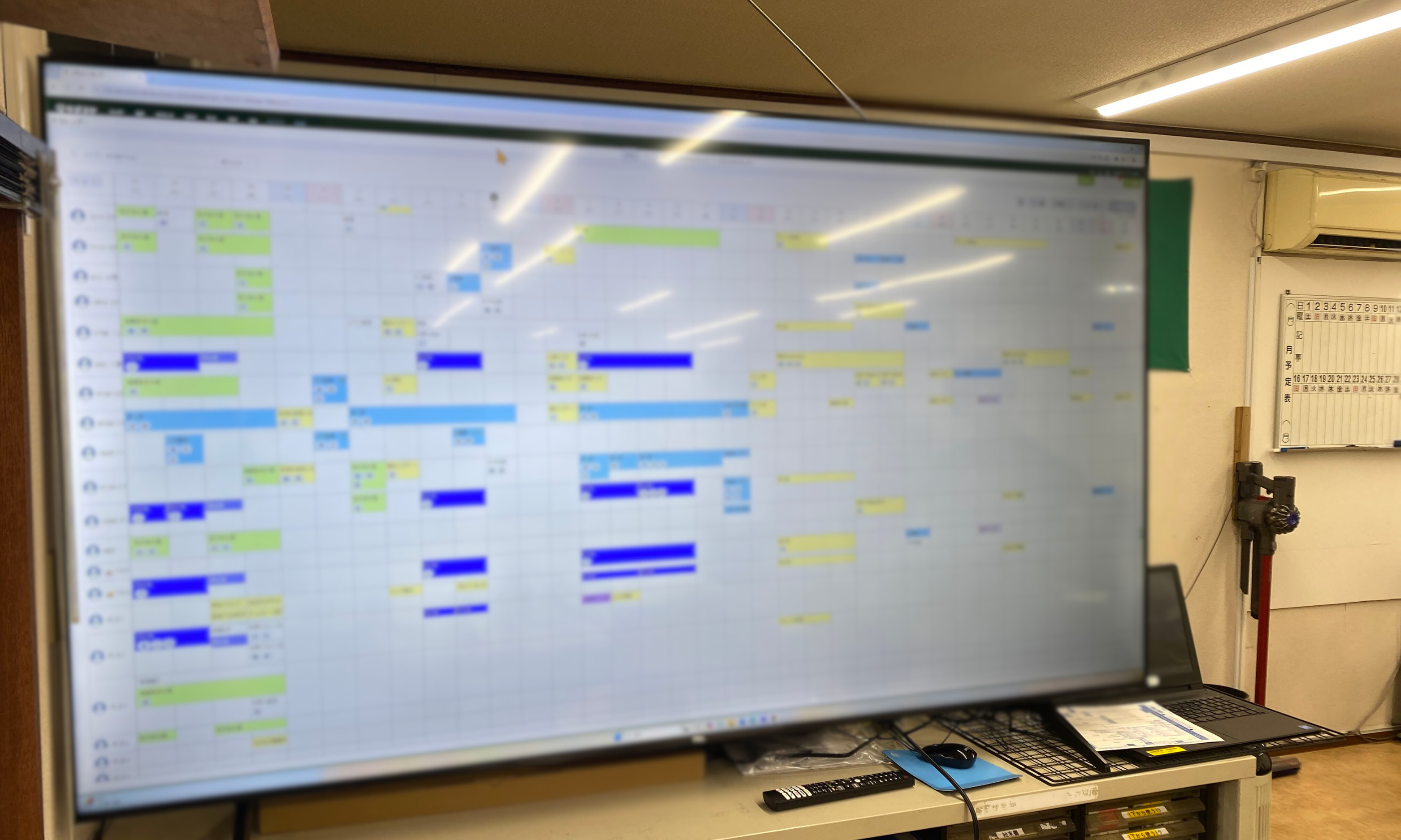 ホワイトボードは、3ヶ月分のスケジュールが書けるようにオーダーメイドで作ってもらっており、すべて手書きで予定を記入していたため、かなり手間がかかっていました。