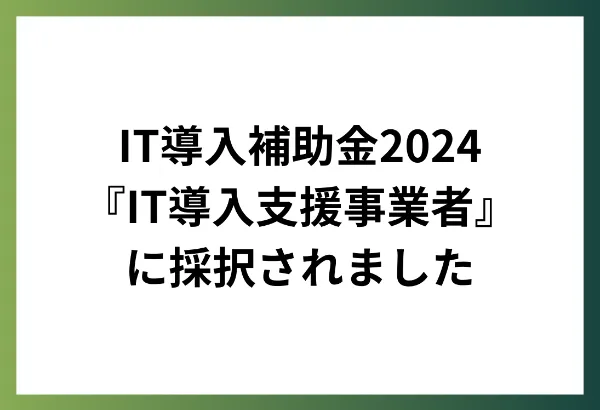 IT導入補助金2024『IT導入支援事業者』に採択されました